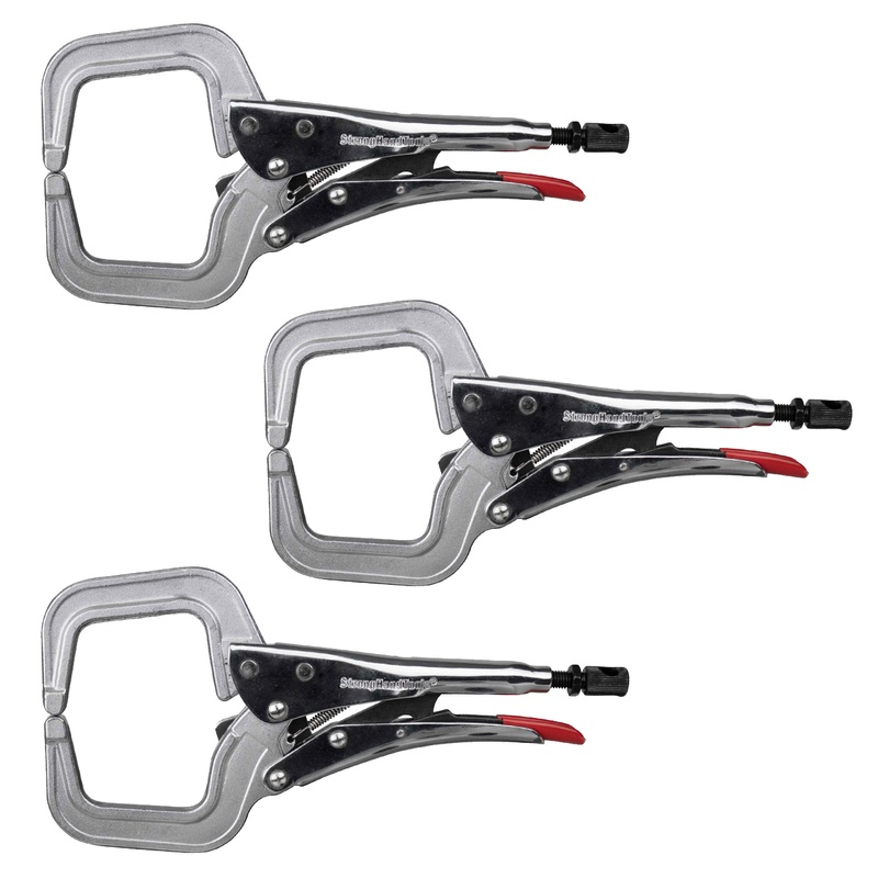 This Locking Pliers Kit includes:PR115 x 3Each 11" Overall Length pliers designed for strength and long-lasting performance. Made from forged, heat-treated steel with nickel and chrome plating, these pliers are built to withstand tough tasks while offering