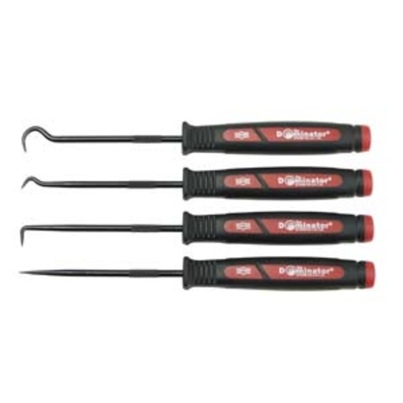 Mayhew 4 Piece Mini Dominator Set - MH60003Scratch all, 90 Degree, Curved and Complex hook Blades Composite, patented, ergonomic handle for comfort and secure grip. Blade extends full length of tool to end cap
