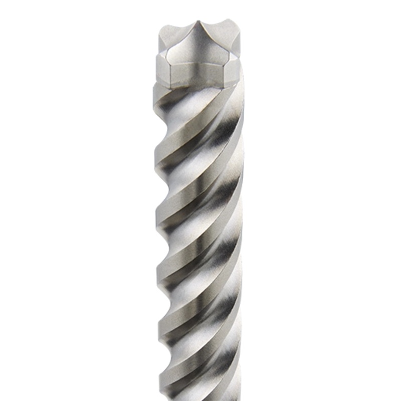 Milwaukee’s MX4 4-Cutter SDS MAX Rotary Hammer Drill Bits with solid head carbide deliver up to 5x longer life in concrete with rebar. Engineered with rebar guards to provide maximum durability in hard aggregate and rebar. We designed our MX4 4-Cutter bits with sharp centering tips for exact spot drilling in concrete. The integrated 4-cutter design prevents lock-up in rebar, reducing downtime. Optimized flutes remove dust faster, reducing heat and delivering up to 15% more holes per battery charge. The wear mark indicator on each drill bit shows you when they no longer meet the ANSI requirement. These MILWAUKEE MX4 4-Cutter Drill Bits are ideal for concrete with rebar and masonry applications.