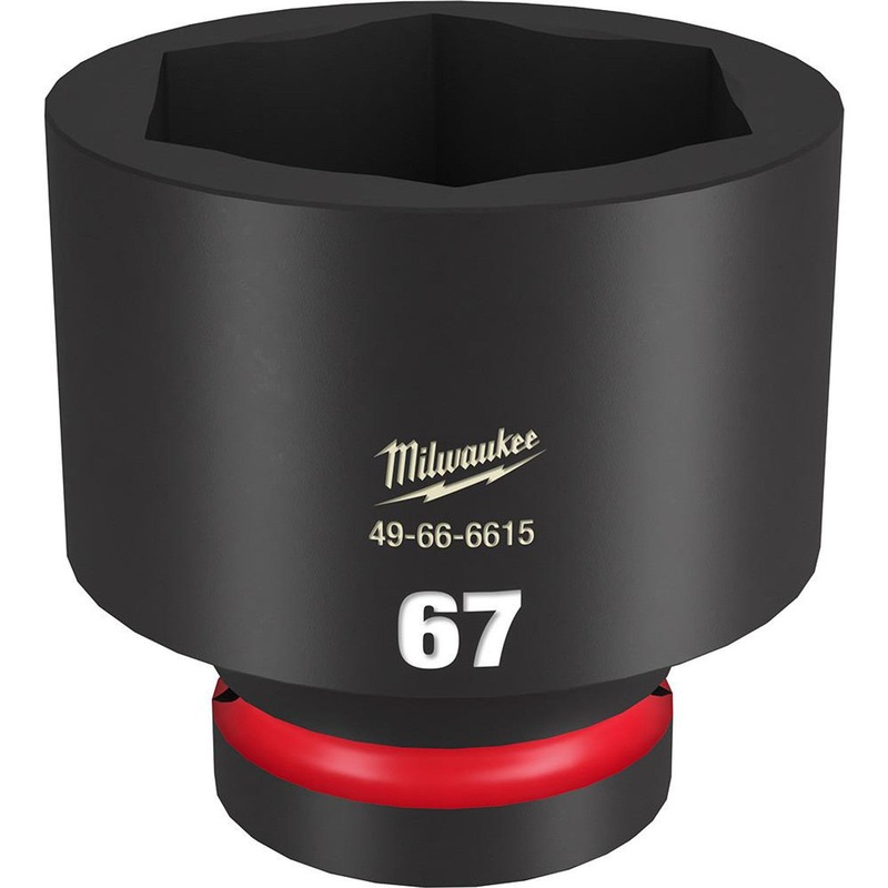 The MILWAUKEE SHOCKWAVE Impact Duty 1" Drive 67MM Standard 6 Point Socket features the boldest, longest-lasting markings and extreme impact durability in high torque applications. The stamped and ink-filled size marking enables an accurate socket selection