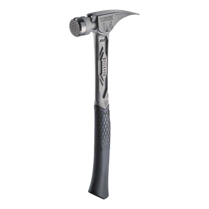 The STILETTO 14oz TIBONE Hammer with Milled Steel Face and Curved Handle is our most powerful and most durable hammer. This All-Titanium hammer is 45% less weight and hits like steel. The durable TIBONE design is best for framing and pulling nails. The 180