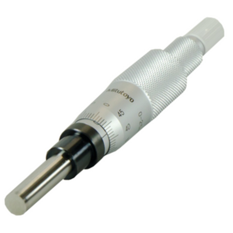 Mitutoyo Micrometer Head, Medium-Sized, Standard, 0-1" - 150-207 This is a standard, medium-size micrometer head that offers you the following benefits: Plain stem and a flat or spherical spindle end With carbide-tipped spindle Specifications Range 0 - 1"