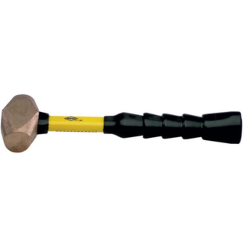 Nupla Brass Hammers Super grip reduces strain and fatigue Non-marring and non-sparking brass head. High driving power in compact head. Handle Material: Fiberglass/Rubber Overall Length: 12" Made in the U.S.A.