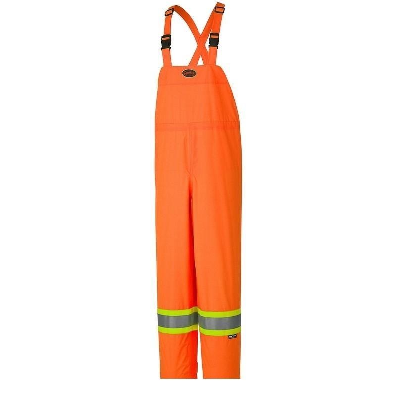Hi-Viz 150D Lightweight Waterproof Safety Bib Pant - Orange (5595)150 Denier PU coated polyester, 10 oz (350 GSM)100% waterproof and windproofCSA Z96-09 Class 3 Level 2 when worn with CSA Class 2 Level 2 top featuring reflective arm bandsStarTech reflectiv