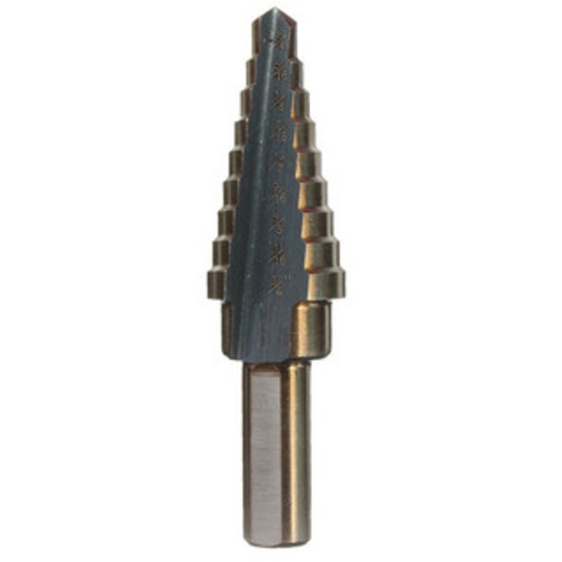 Precise 1/4-3/4" x 1/16" Hole Range, High Speed Steel Step Drill w/9 Steps - 5000-0015 Made of high speed steel, Heat treated and tempered for maximum strength. Self Starting. Requires no center punch to start drilling. Automatically deburrs drilled hole.