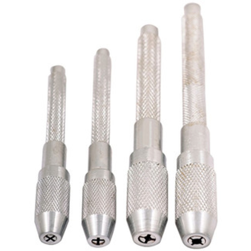 Precise 4 Piece Pin Vise Set - 3700-0505 Hollow handle for long wire or rods. 1 piece of 0-.055" X 2.88" overall length. 1 piece of .025-.075" X 3.29" overall length. 1 piece of .045-.125" X 3.69" overall length. 1 piece of .110-.187". X 4.09" overall leng