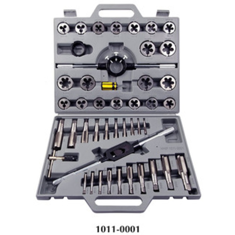 Precise 45 Piece 1/4-1" Tungsten Steel Tap & Die Set - 1011-0001 Range: 1/4 - 1 Packed in a fitted durable & attractive plastic case with marked index . Ideal set for any situation. Weight 16 lbs. For More Precise 45 Piece Tungsten Steel Tap & Die SetsClic