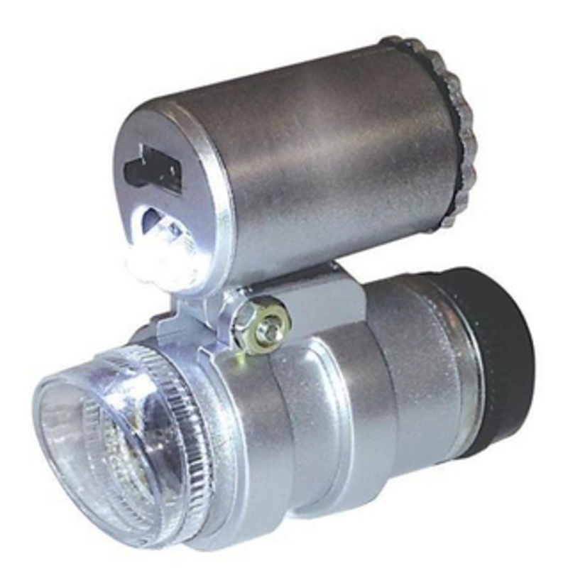 Precise 45X High Power Illuminated Pocket Magnifier - 202 Great tool for conducting scientific research when you are away from big, heavy microscopes. A very powerful magnifier that comes in the shape and size of an ordinary pen. A single LED light illumin