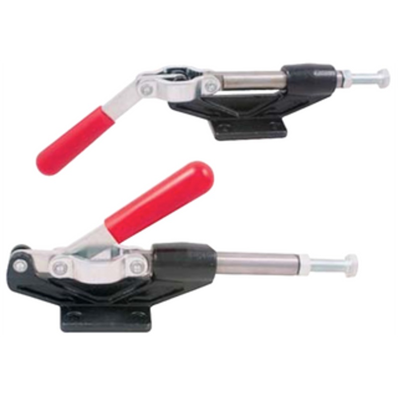 Precise Deluxe Push/Pull Clamp, 800 lbs. Holding Capacity - 3900-0390 Ductile iron base for close fit machining, strength and durability. All parts are die stamped from solid steel. Plastic hand grip for safety & convenience. Double plated to avoid rust. C