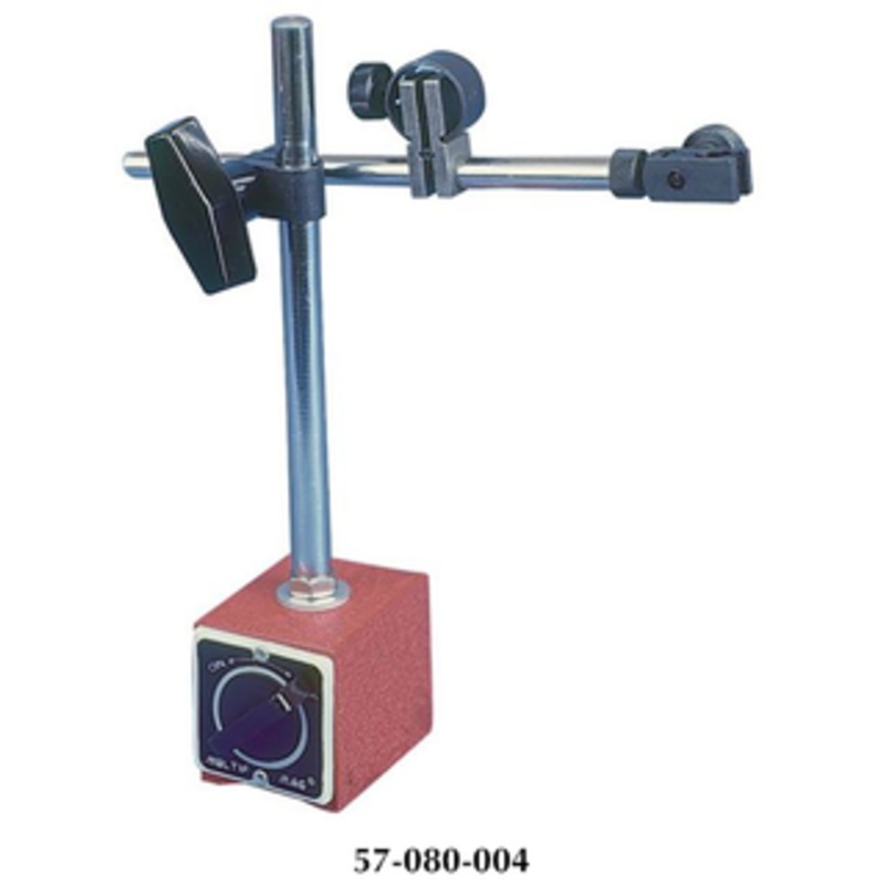 Precise Magnetic Base w/Fine Adjustment Rod 57-080-004 Unique clamp can be used on both ends of the rod. Clamp on lug-back, stems and on dovetails. Holds Stem Diameter: 1/8", 5/32", 1/4", 3/8", dovetail & lug back 110 lbs. of magnetic holding power. On/off