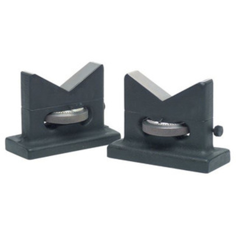 Precise Micro-Rise High Precision Adjustable "V" Block Set, 2 piece Set with Clamps Use for inspection or production work where multiple diameter stock needs to be held.Features: Wide angle "V" accepts 3/16" to 5" diameters. 1/2" total rise of "V", .050" p