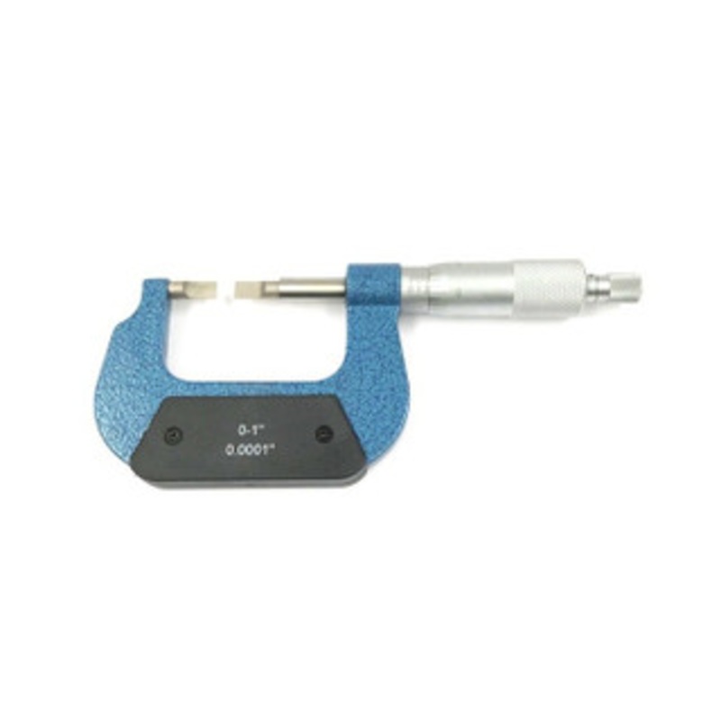 Precise Precision Blade Micrometers Graduation is .0001". For taking measurements of workpieces which have narrow grooves or "T" slots when standard micrometer can't reach. Microfine graduations on satin chrome finish for easy reading. Anvil & spindle hard