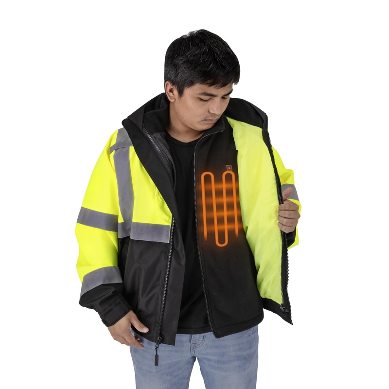 • [VERSATILE AND PROTECTIVE CONSTRUCTION] The water-resistant polyester bomber jacket, combined with a removable inner heated fleece vest provides a 3-in-1 design for versatility, durability and added protection against weather, while maintaining safe with a Class 3 rated protection.