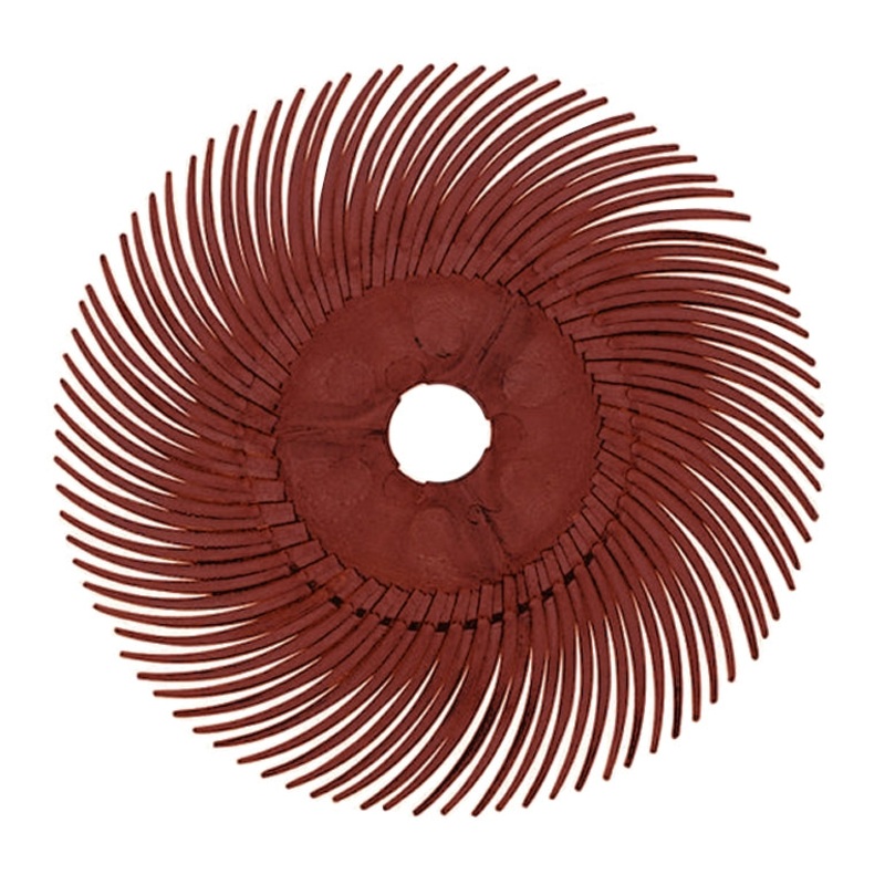3M Radial Bristle Discs are embedded with a long-lasting abrasive material which eliminates the need for messy compounds. Flexible and cool-running bristles are great for hard-to-reach areas or flat surfaces. Clean and remove dirt, rust and oxidation without damaging the underlying surface. Use on platinum, gold, silver, pewter, aluminum, steel and stainless steel. These 3″ discs have 3/8″ arbor holes.