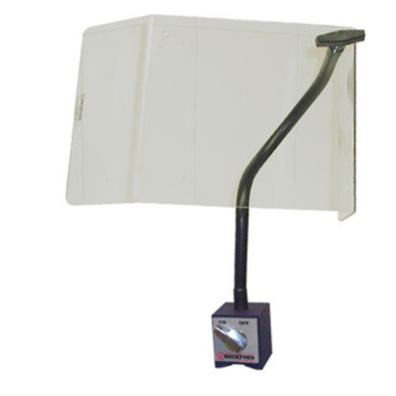 Rockford On/Off Magnetic-Base Shield 30 and 90 w/10-3/8" Front and 18" Flex Arm - KYL210 On/Off Magnetic-Base Shields for Various Machinery Applications These versatile On-Off magnet-base shields can be used on lathes, drills, mills, grinders, or any equip