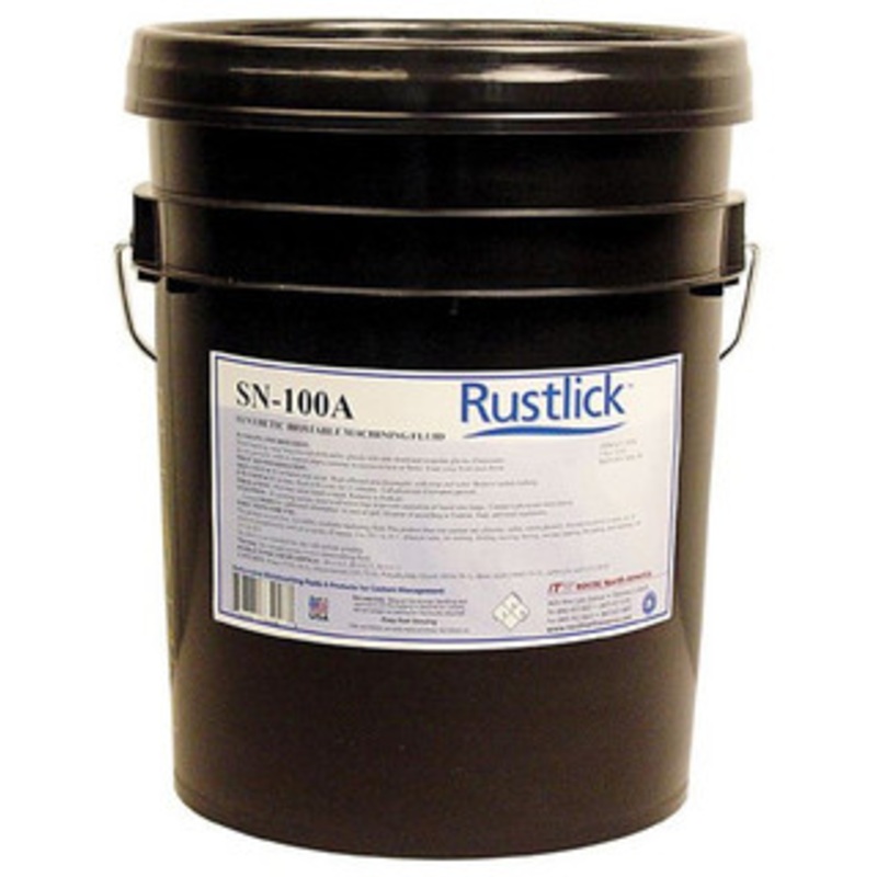 Rustlick SN-100A Heavy Duty Synthetic Machining Coolant Applications: Medium to heavy duty biostable coolant for general purpose use Dilution ratio: 10:1 to 30:1 parts water Features: Level PH prevents rancidity Safe for most metals including titanium Spec