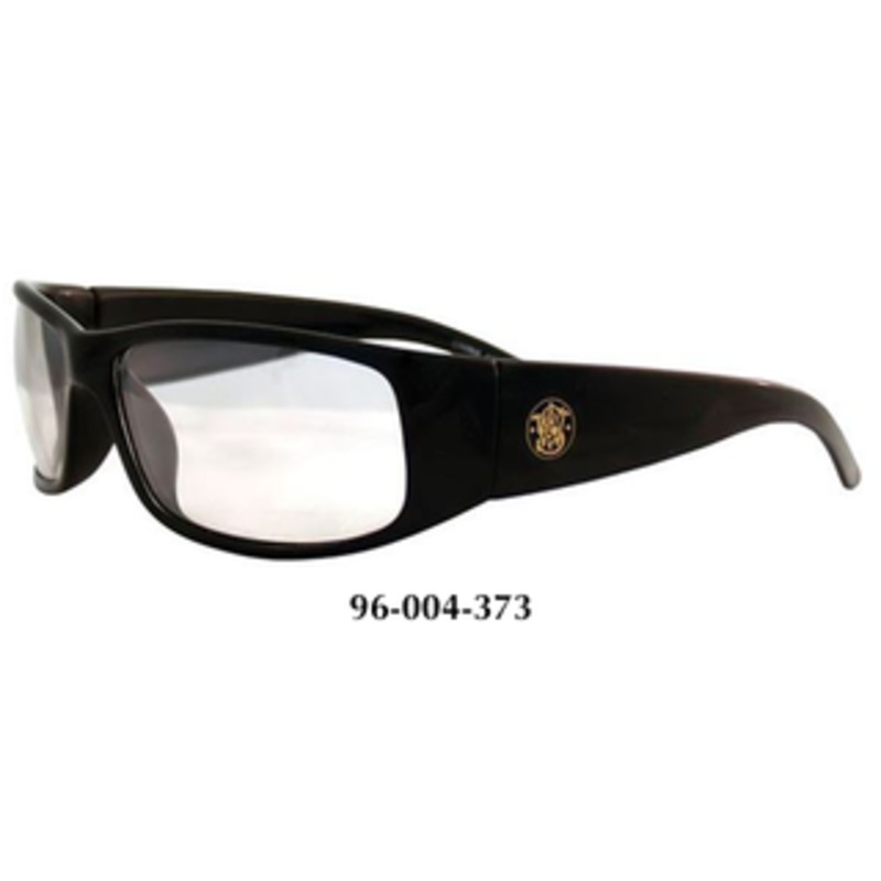 Smith & Wesson Elite Black Frame Safety Glasses373 Black frame. Lightweight "retro-style" design provides the latest fashion statement. Cut to shape lenses prevent image distortion. Dual lenses with an 8-base curve that provides wrap-around protection. Hig