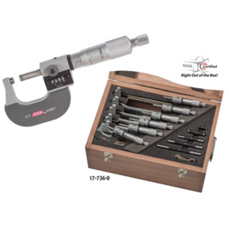SPI Digit Outside Micrometers & Sets Mechanical Digit Counter for Quick Error Free Reading Features: Carbide measuring faces Painted steel frame with plastic heat shield Standard included above 0 - 1"/0 - 25 mm range Spindle dia.: 0.250" Graduation: 0.0001