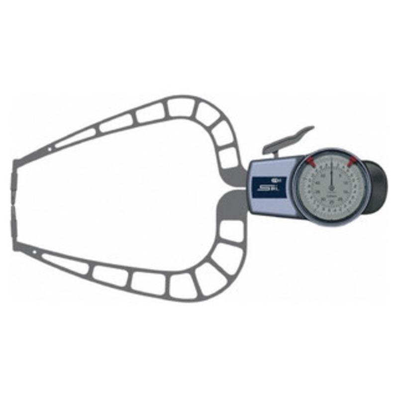 SPI Mechanical Oditest Caliper Gage for Pipes and Tubes0 - 50 mm Used for measuring external grooves, recess diameters and thicknesses Certain Oditest gages are used for measuring the wall thickness of small pipes and tubes Jeweled movement, dust, splash a