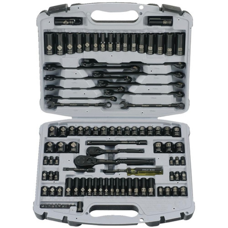 Stanley 92-839 99-Piece Black Chrome Socket Set Details The 99-Piece black chrome and laser etched socket set meets or exceeds ANSI standards for sockets and ratchets. 15% more torque is provided by the max-drive design. Black chrome provides corrosion res