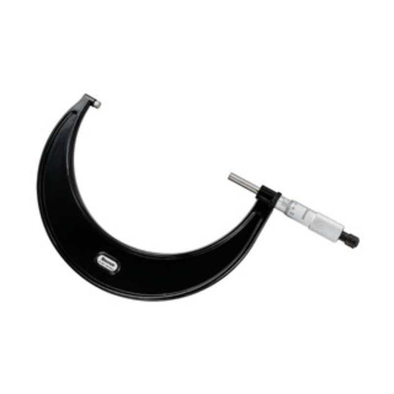 Starrett 125-150mm Outside Micrometer, Ratchet Thimble, EDP 68066 - V436.1MXRL-150 Outside Micrometer, Rachet Thimble, Carbide Anvil-Spindle, 125-150mm Range, 0.001mmThe Starrett 436.1M Outside Micrometer features ratchet stop, lock nut, and carbide face.