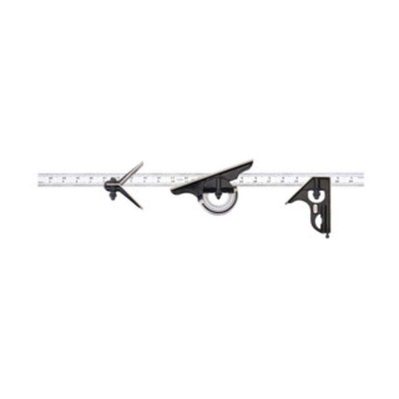The Starrett 24″ Combination Set with Square, Center and Reversible Protractor Head and Blade has the same features as the 435 Series except that the square heads and center heads are forged, hardened steel with smooth, black enamel finish. 24″, 16R Grad.