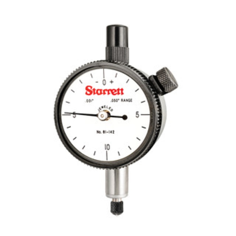Starrett 81 Series Dial Indicator, EDP 53402 - 81-142JThe Starrett 81 Series Dial Indicator has a shockless, hardened steel gear train and jewel bearings. It is furnished with a lug-on-center back. Antimagnetic and special non-shock mechanisms are options