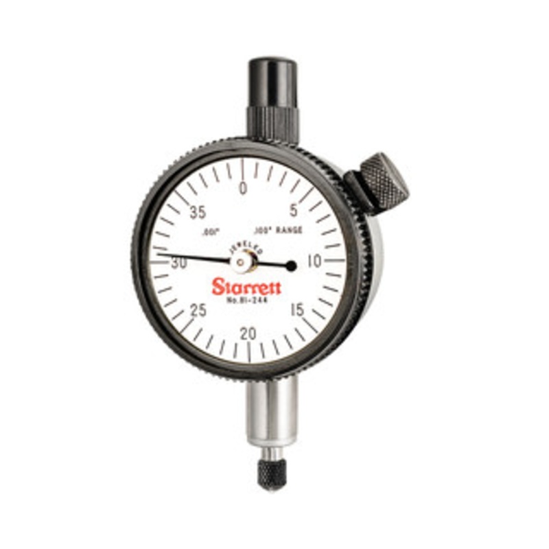 Starrett 81 Series Dial Indicator, EDP 53434 - 81-244JThe Starrett 81 Series Dial Indicator has a shockless, hardened steel gear train and jewel bearings. It is furnished with a lug-on-center back. Antimagnetic and special non-shock mechanisms are options