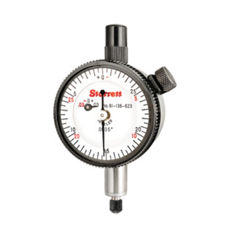 Starrett 81 Series Dial Indicator with Double Row Figure, EDP 53396 - 81-136-623JThe Starrett 81 Series Dial Indicator with Double Row Figures cannot be specified with a special non-shock mechanism. .075" Range, Dial Reading -0.30 +0.30, .0005" Grad.Featur