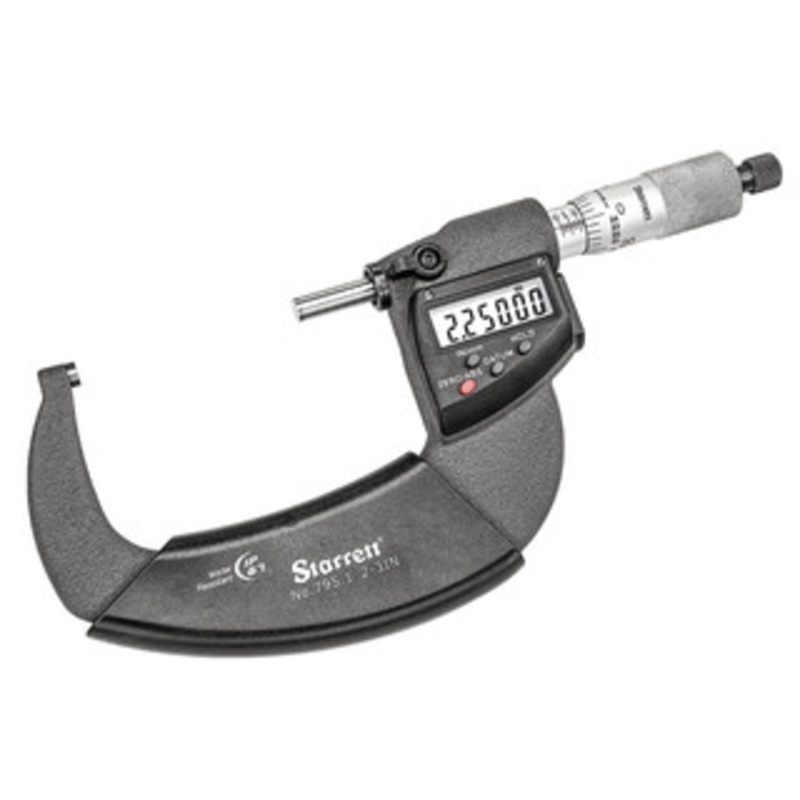 Starrett Electronic Micrometer, 2-3" w/ Ratchet Thimble, with Data Output - 795.1XRL-3 01110 IP67 Outside Micrometer, Rachet Thimble, Carbide Anvil, SPC Output, .00005" Res., 2-3" Range The Starrett 795.1 Electronic Micrometers provide an IP67 level of pro