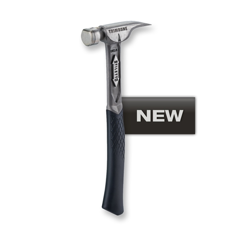 The STILETTO 10oz TRIMBONE Hammer with Smooth Steel Face and Curved Handle is designed for finish with specialized features. This titanium hammer is 45% less weight and hits like steel. The compact D-Face and Trim Claw are ideal for tight spaces. The TRIMBONE also features a steel face and a replaceable colored grip, available in 6 colors, extending the life of the hammer and providing a personal touch. The 180 side nail puller is ideal for 2D-10D nails but has the power to pull up to 16D.