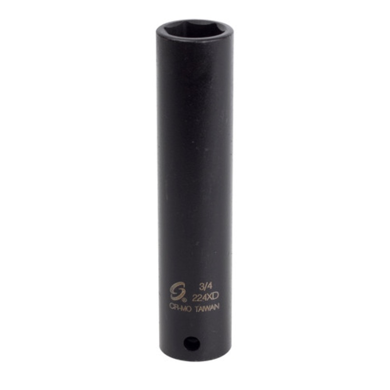 Sunex 224XD 1/2 in. Drive 3/4 in. SAE Extra Long Deep Impact Socket Details Sunex Tool's offers professionals some of the toughest, most reliable sockets available on the market. Each socket is forged from either durable chrome molybdenum alloy steel (CR-M