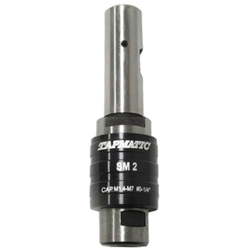 Tapmatic "SM" Series Tension & Compression Tapping Units Axial float provides greater thread accuracy. Releasable hard start. Accurate depth control. Compact Design Attachments are made in USA. Item No. Capacity in Steel Diameter Shank Length 85-001-536 #0