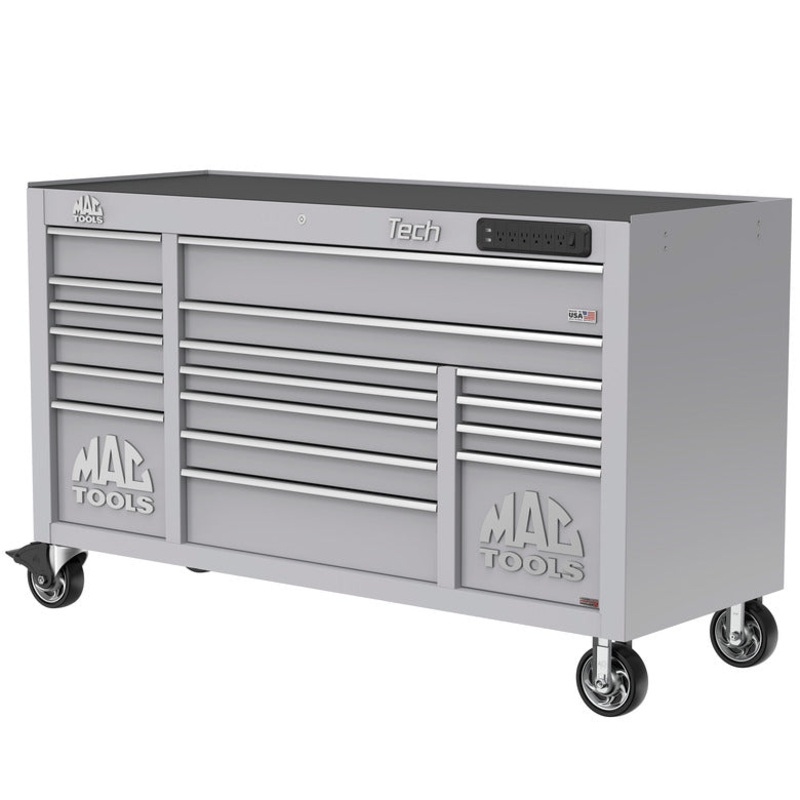{“specs”:{“spec”:[{“name”:”MT_AllowRetailStyle”,”value”:”false”},{“name”:”MT_Area_SqIn_Specs”,”value”:”8583″},{“name”:”MT_Banks_Specs”,”value”:”Triple”},{“name”:”MT_Color_Specs”,”value”:”Mica Gray”},{“name”:”MT_Contents”,”value”:”(1) 44-3/8 x 3-3/8 x 23 (1128.5mm x 86mm x 584mm) |(1) 44-3/8 x 5-3/4 x 23 (1128.5mm x 146mm x 584mm) |(2) 28 x 2-1/4 x 23 (711mm x 57mm x 584mm) |(2) 28 x 3-3/8 x 23 (711mm x 86mm x 584mm) |(1) 28 x 6-7/8 x 23 (711mm x 175mm x 584mm) |(2) 13-3/8 x 2-1/4 x 23 (341mm x 57mm x 584mm) |(4) 13-3/8 x 3-3/8 x 23 (341mm x 86mm x 584mm) |(1) 13-3/8 x 4-1/2 x 23 (341mm x 114mm x 584mm) |(1) 13-3/8 x 11-1/2 x 23 (341mm x 292mm x 584mm) |(1) 12-3/8 x 11-1/2 x 20 (315.5mm x 292mm x 508mm) |”},{“name”:”MT_Depth_in_Specs”,”value”:”25-1/4″”},{“name”:”MT_Depth_mm_Specs”,”value”:”641mm”},{“name”:”MT_FeaturesAndBenefits”,”value”:”5 and 3 Xtra-Wide top drawers for convenient access to the tools you use every day|Its Uni-Key lock system enables you to lock and unlock all drawers simultaneously with the turn of a single key |Ball-bearing track slides |Heavy-duty 6″ casters |4-Outlet 110V power strip + 2 USB Port front facing power strip |4-Outlet 110V power strip |Breaker to prevent overloads |Store and charge up to four battery packs |Removable back panel keeps cords neat |1/4-Turn fasteners for easy access |Adjustable drawer divider separates chargers from tools”},{“name”:”MT_HidePrice”,”value”:”false”},{“name”:”MT_NumberofDrawers_Specs”,”value”:”16″},{“name”:”MT_Pims_Description”,”value”:”Tech Series 16-Drawer Workstation with PowerTech Drawer – Mica Gray”},{“name”:”MT_SlideCapacity_Specs”,”value”:”125 lbs. Per Pair”},{“name”:”MT_Type_Specs”,”value”:”Workstation”},{“name”:”MT_Width_in_Specs”,”value”:”66-7/8″”},{“name”:”MT_Width_mm_Specs”,”value”:”1699mm”},{“name”:”MT_Pims_SkuId_Specs”,”value”:”T6725PDP-GY”},{“name”:”MT_ProductType_Specs”,”value”:”Individual”}]},”refiners”:{“refiner”:[{“name”:”Color”,”value”:”Mica Gray”},{“name”:”Number of Drawers”,”value”:”16″},{“name”:”Series”,”value”:”Tech”},{“name”:”Type”,”value”:”Workstation”}]},”featuresandbenefits”:”5 and 3 Xtra-Wide top drawers for convenient access to the tools you use every day|Its Uni-Key lock system enables you to lock and unlock all drawers simultaneously with the turn of a single key |Ball-bearing track slides |Heavy-duty 6″ casters |4-Outlet 110V power strip + 2 USB Port front facing power strip |4-Outlet 110V power strip |Breaker to prevent overloads |Store and charge up to four battery packs |Removable back panel keeps cords neat |1/4-Turn fasteners for easy access |Adjustable drawer divider separates chargers from tools”,”schoolnames”:{“value”:null},”contents”:”(1) 44-3/8 x 3-3/8 x 23 (1128.5mm x 86mm x 584mm) |(1) 44-3/8 x 5-3/4 x 23 (1128.5mm x 146mm x 584mm) |(2) 28 x 2-1/4 x 23 (711mm x 57mm x 584mm) |(2) 28 x 3-3/8 x 23 (711mm x 86mm x 584mm) |(1) 28 x 6-7/8 x 23 (711mm x 175mm x 584mm) |(2) 13-3/8 x 2-1/4 x 23 (341mm x 57mm x 584mm) |(4) 13-3/8 x 3-3/8 x 23 (341mm x 86mm x 584mm) |(1) 13-3/8 x 4-1/2 x 23 (341mm x 114mm x 584mm) |(1) 13-3/8 x 11-1/2 x 23 (341mm x 292mm x 584mm) |(1) 12-3/8 x 11-1/2 x 20 (315.5mm x 292mm x 508mm) |”,”drawings”:null}