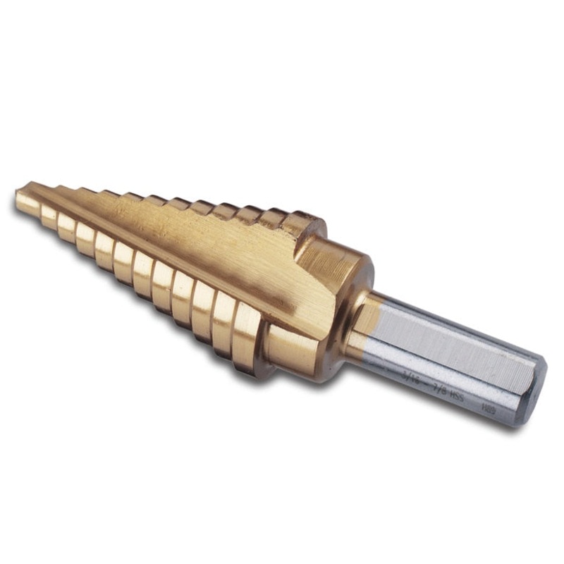 Titanium-Nitride Coated Stepped Drill Bit 3/16″ – 7/8″ (12 steps)