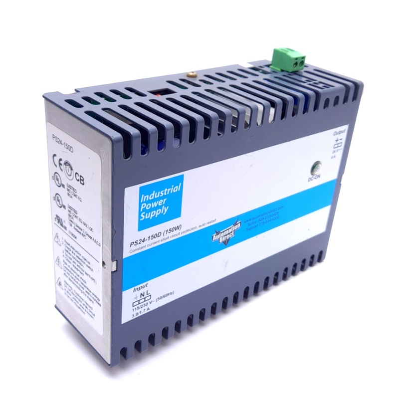 From our inventory we are selling a Automation Direct PS24-150D Power Supply, 115/230VAC In, 24VDC 6A Out, 150W Max.