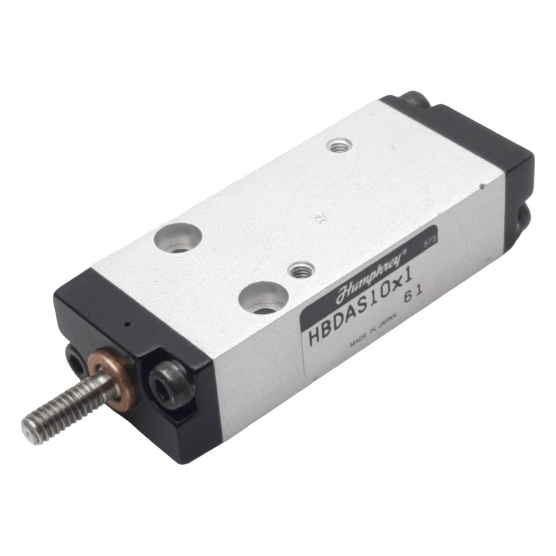 From our inventory we are selling a Humphrey HBDAS10X1 Pneumatic Cylinder, 10mm Bore, 1in Stroke, M3, 100psi.
