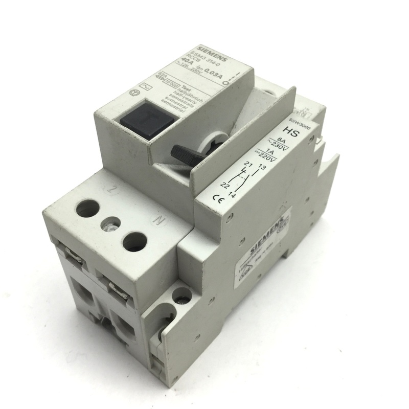 Item Condition: UsedSKU: SB-147018ST1-4-IFrom our inventory we are selling a Siemens 5SM3 314-0 Circuit Breaker, 2-Pole, 40A w/ 5SW3000 Auxiliary Contact. Specifications:Model #: 5SM3 314-0 RCCB 5SW3000 More Information: Circuit Breaker 2-Pole Rating: 40A
