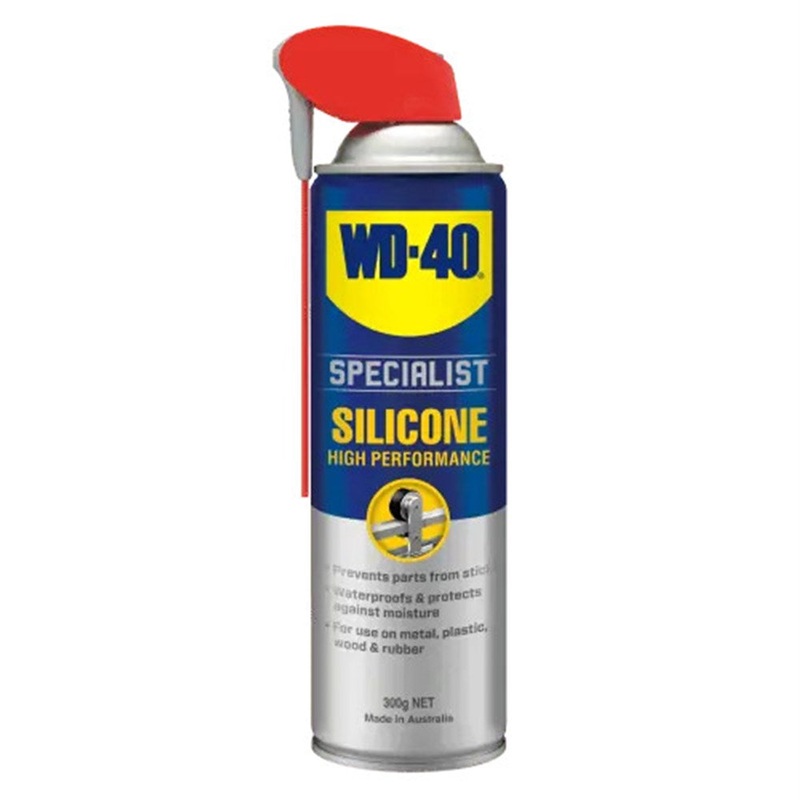 WD-40 SpecialistSilicone Lubricant safely lubricates, resists water and protects metal and non-metal surfaces such as rubber, plastic and vinyl. Once dried, this formula leaves a clear, non-staining film that doesn’t stick or make a mess, so it won’t attract dirt. This silicone lubricant spray is great for use on cables, pulleys, guide rails, valves, linkages, hinges, locks and more. Effective in-use temperatures ranging from -100 F to 500 F.