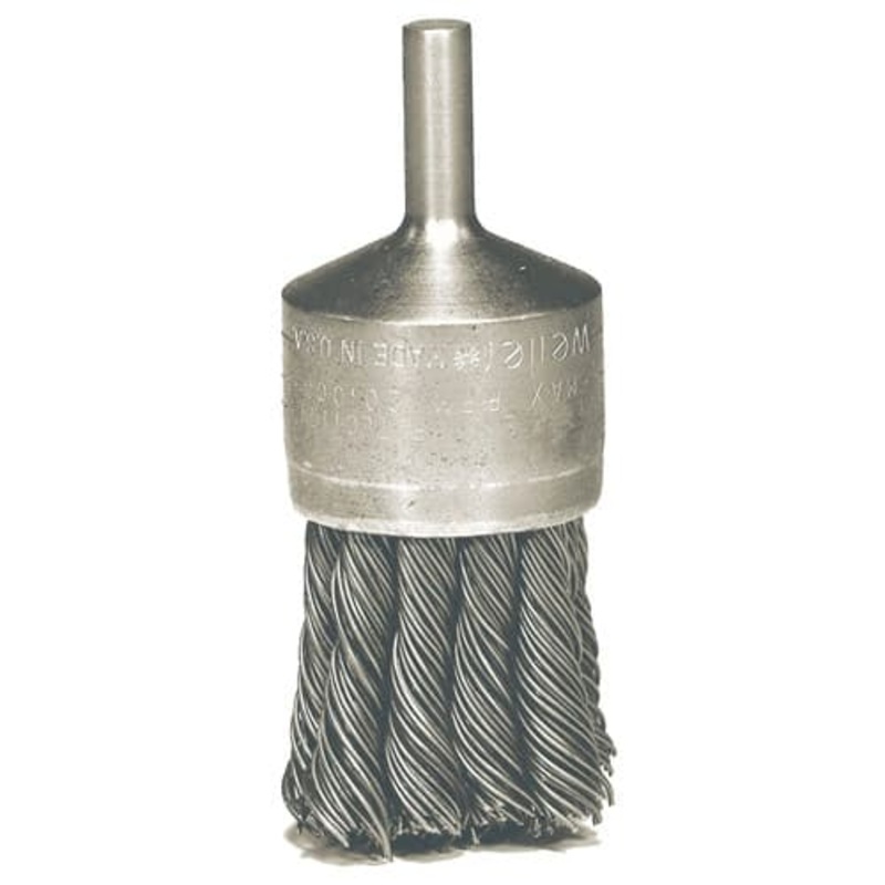 Weiler 10028 Includes (1) 1-1/8" Knot Wire End Brush, .020 Weiler 10028 Features Hollow end Rugged Knot -type construction provides aggressive, high-impact action for severe applications22,000 rpmSteel Weiler 10028 Specifications Trim Length 7/8 in Fill Di