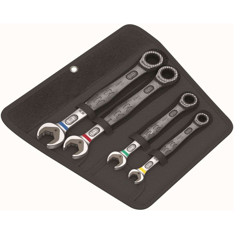 Refine your tool collection with the 6000 Joker 4 Set 1, a four-piece set of ratcheting combination wrenches from Wera, designed for unparalleled efficiency and versatility. This set combines innovative features for working in tight spaces with enhanced durability and precision.