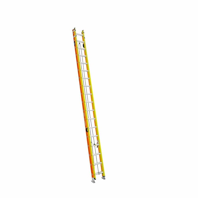 The T6236-2GS GLIDESAFE Fiberglass Extension Ladder was built with safety in mind. Featuring Lift Assist Technology which makes it up to 50% easier to extend versus a traditional extension ladder, eliminating back and arm strain. Built-in lowering assist helps to ensure a smooth, easy descent preventing slamming and rope burns. GLIDESAFE features a dual locking system to help prevent ladder extension during transport. Non-conductive rails makes this ladder ideal for working near electricity. With a duty rating of 300 lbs., the ladder is durable and long-lasting. The exclusive Alflo rung joint means Twist-Proof performance on the job. The Traction-tread tri rungs are slip-resistant and the side rails are interlocking. The dual action feet are for use on hard or penetrable surfaces and swivel easily. The durable rail shield bracket and shoe help protect the bottom of the rail. The fly section rails are pre-pierced at the top for easy field installation of accessories.