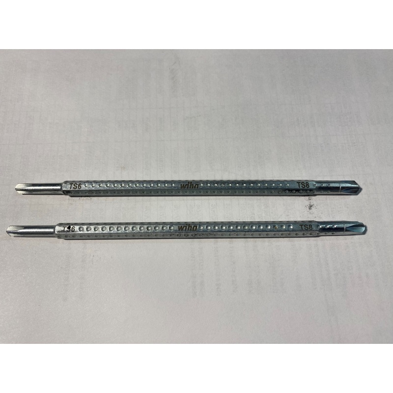 Wiha 28143 TS6X + TS8 Torq-Set Drive-Loc VI Blade Screw Tip 6" Long 2pcs.Product DescriptionWiha 28143 - Torq Set Drive-Loc VI Interchangeable Blade #6-#8. High alloy CVM steel, through hardened, hard chrome finish. Over all blade length 150mm/5.9. Blades