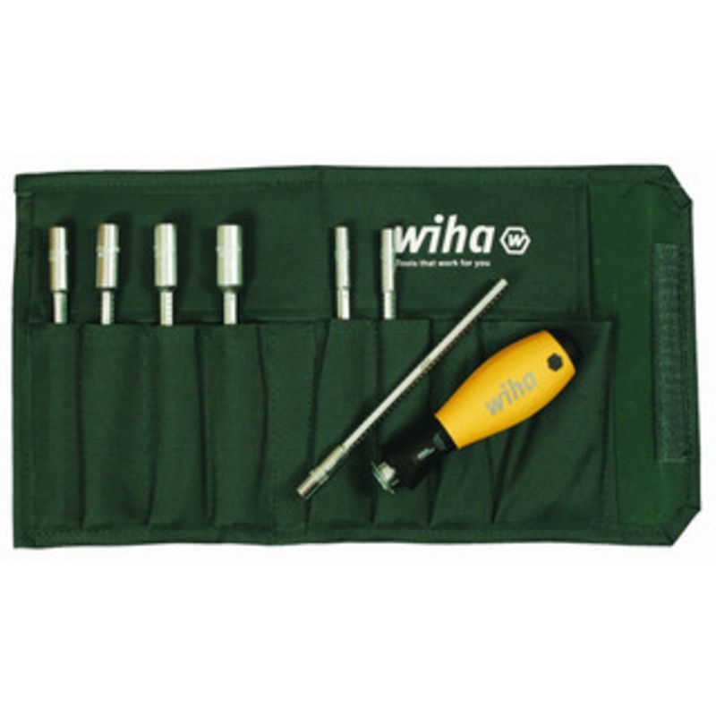 Wiha ESD Safe Metric Nut Drivers Blade Set - 10892 ESD Safe Interchangeable Metric Nut Driver Blade Set includes ESD Safe Handle and sizes: 5, 5.5, 6, 7, 8, 9 & 10mm in Canvas PouchHandle: Made of ESD-Safe Dissipative Material Ergonomic Handle Shape for Us
