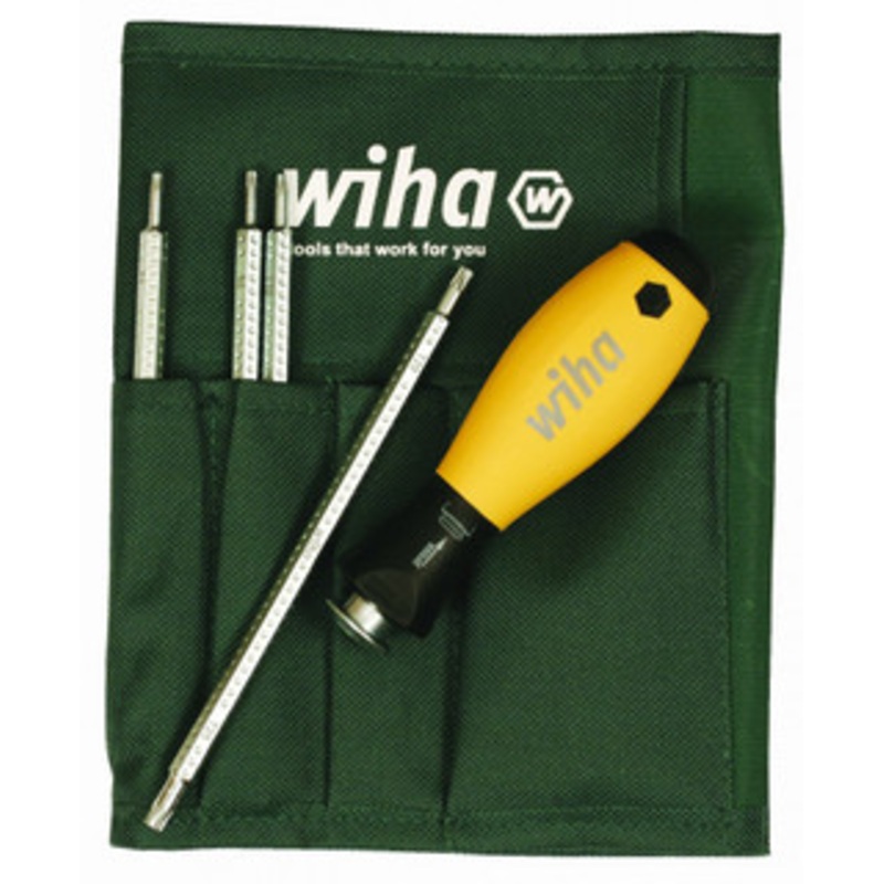 Wiha ESD Safe Torx Blade Set - 10893 ESD Safe Interchangeable Torx Blade Setincludes ESD Safe Handle and sizes: T6, T7, T8, T9, T10, T15, T20, T25 in Canvas PouchHandle: Made of ESD-Safe Dissipative Material Ergonomic Handle Shape for User Comfort Rotating