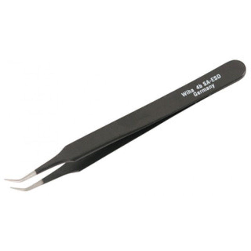 Wiha ESD Safe Tweezers 4b SA - 110mm - 55539 ESD Safe Tweezers 4b SA Very Fine Points 40 Tapered To Tip 110mmDetails: Static Dissipative Special alloyed, Non-Rusting, Stainless Steel Coated by ESD-Safe Dissipative Material Anti Magnetic and Acid resistant
