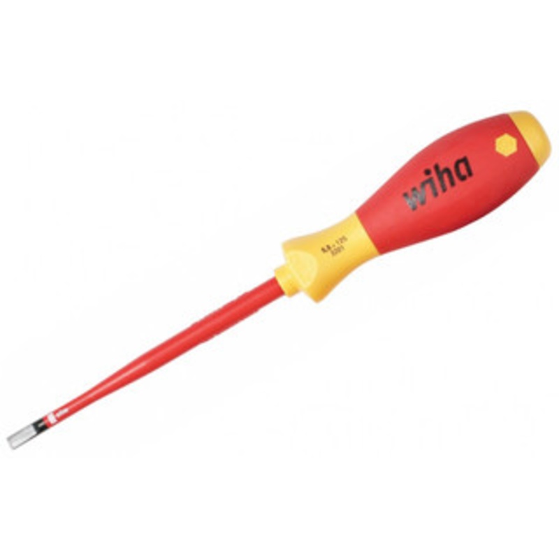 Wiha Insulated SlimLine Slotted Screwdrivers Insulated 1000 Volt Rated, 10,000 Volt Tested Meets ASTM F1505, VDE 0682/part201, DIN 7437, EN/IEC 60900, NFPA-70E & CSA specification Ideal for jobs where access is limited Integrated Slim Insulation Molded dir