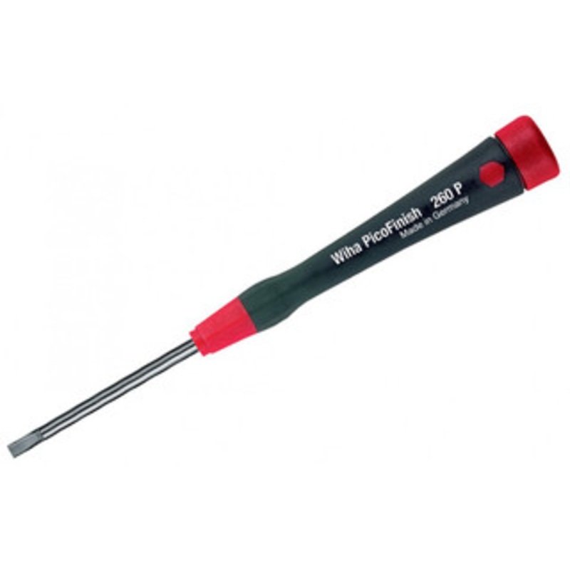 Wiha PicoFinish Precision Slotted Screwdriver2.5 x 100mm26068 Details: Slotted Exact Fit Precision Machined Tips Wiha Exclusive CRM-72 Special Tool Steel Satin Micron Vapor Chromed Finish Super Through Hardened Blades Handles Proportioned to Blade Size for