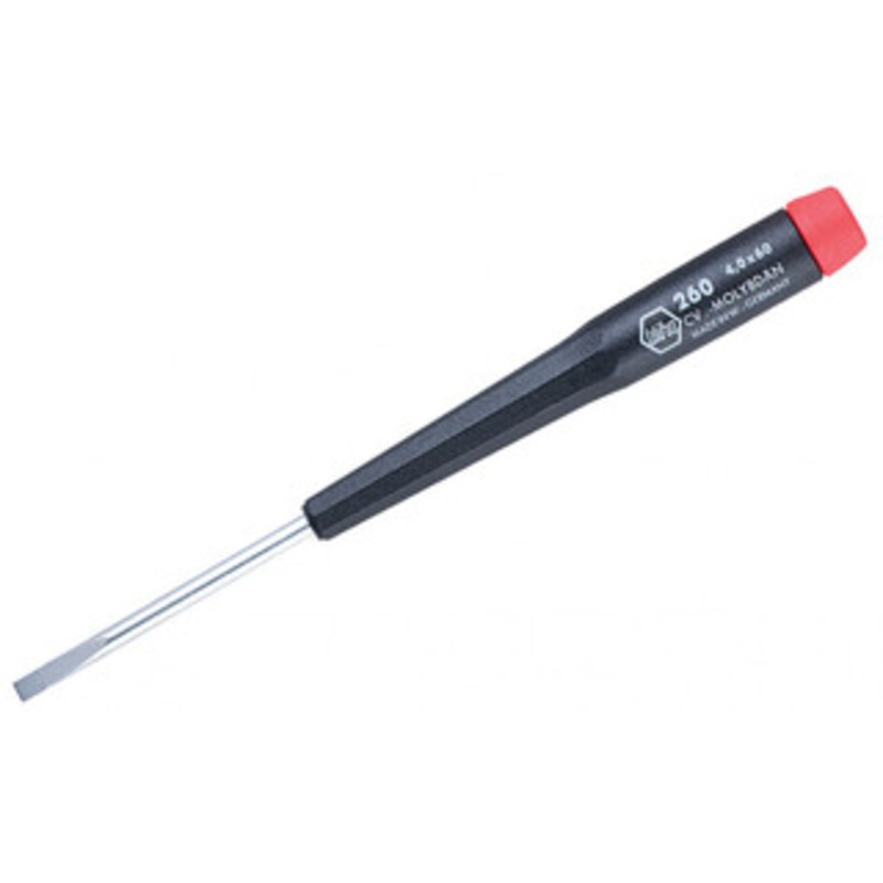 Wiha Precision Slotted Screwdriver4.0mm (5/32") x 100mm26041 Details: Exact Fit Precision Machined Tips Wiha Exclusive CRM-72 Special Tool Steel Satin Micron Vapor Chromed Finish Super Through Hardened Blades Handles Proportioned to Blade Size for optimum