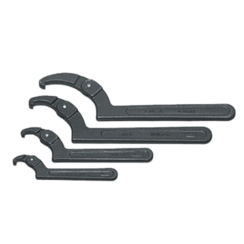 Williams 4 Piece Adjustable Hook Spanner Wrench Set, 3/4" - 8-3/4" Capacity, 5-3/8" - 17-1/2" Length - WS-474 Ideal for adjusting collars, lock nut rings, and bearings. Specifically engineered to hold up under the most rigorous industrial use. Finish Coati